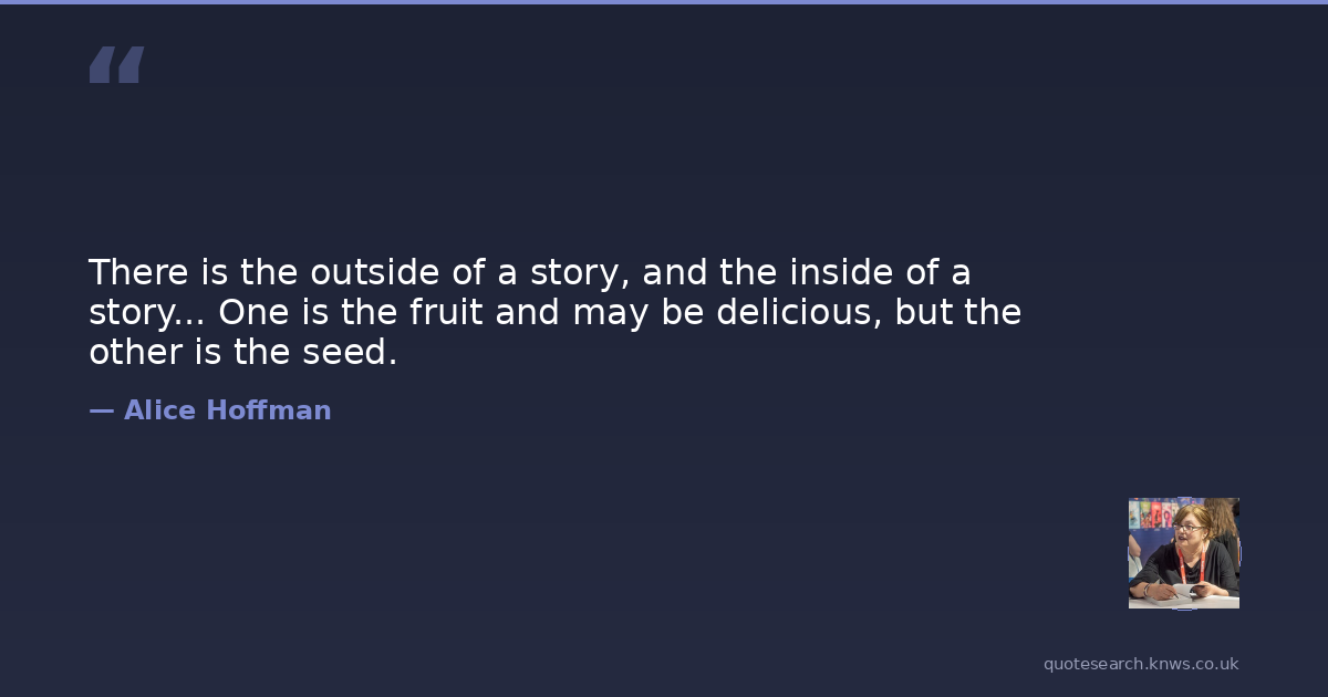 There is the outside of a story, and the inside of a story... One is the fruit and may be delicious, but the other is the seed.