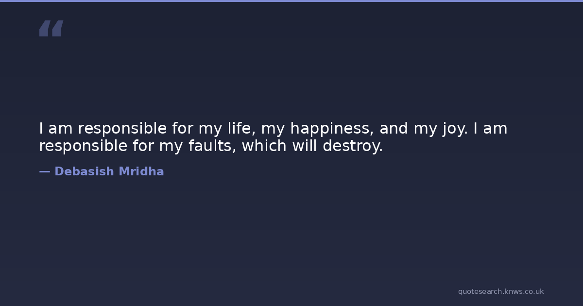 I am responsible for my life, my happiness, and my joy. I am responsible for my faults, which will destroy.