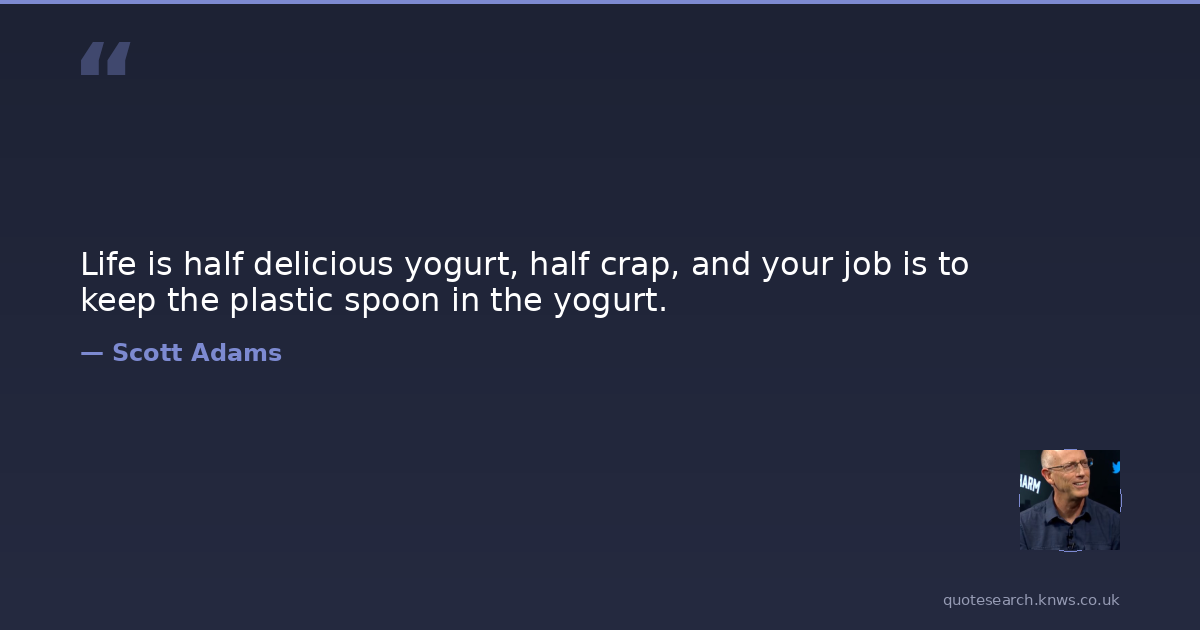 Life is half delicious yogurt, half crap, and your job is to keep the plastic spoon in the yogurt.