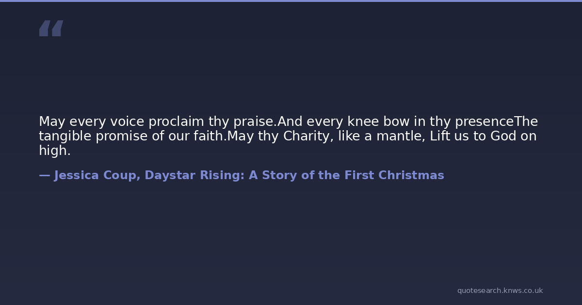 May every voice proclaim thy praise.And every knee bow in thy presenceThe tangible promise of our faith.May thy Charity, like a mantle, Lift us to God on high.