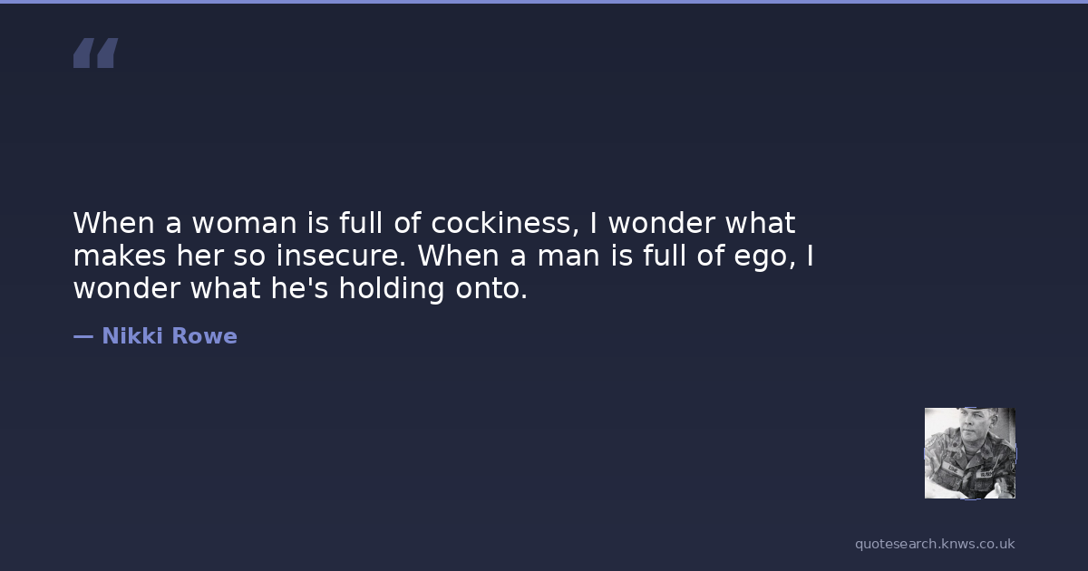 When a woman is full of cockiness, I wonder what makes her so insecure. When a man is full of ego, I wonder what he's holding onto.