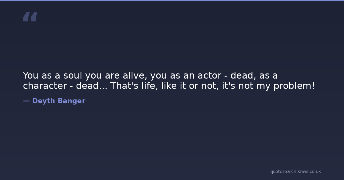 You as a soul you are alive, you as an actor - dead, as a character - dead... That's life, like it or not, it's not my problem!
