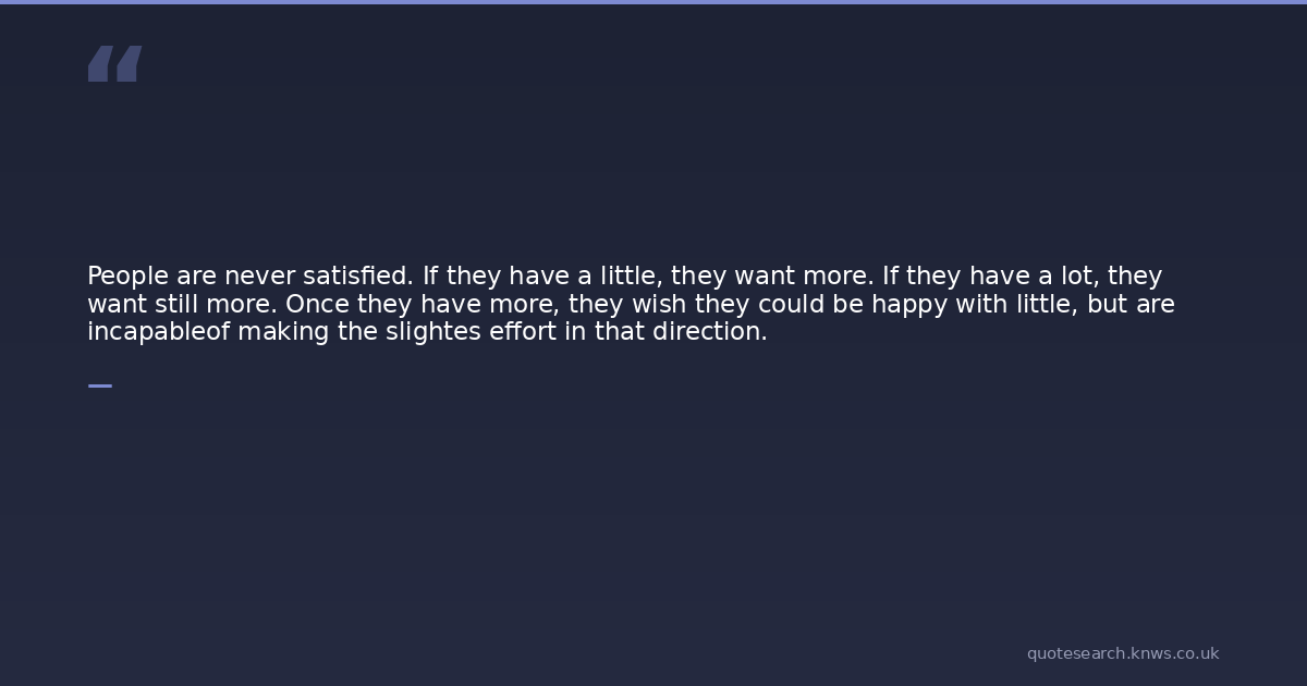 People are never satisfied. If they have a little, they want more. If they have a lot, they want still more. Once they have more, they wish they could be happy with little, but are incapableof making the slightes effort in that direction.