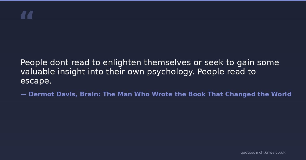 People dont read to enlighten themselves or seek to gain some valuable insight into their own psychology. People read to escape.