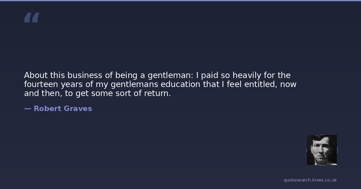About this business of being a gentleman: I paid so heavily for the fourteen years of my gentlemans education that I feel entitled, now and then, to get some sort of return.