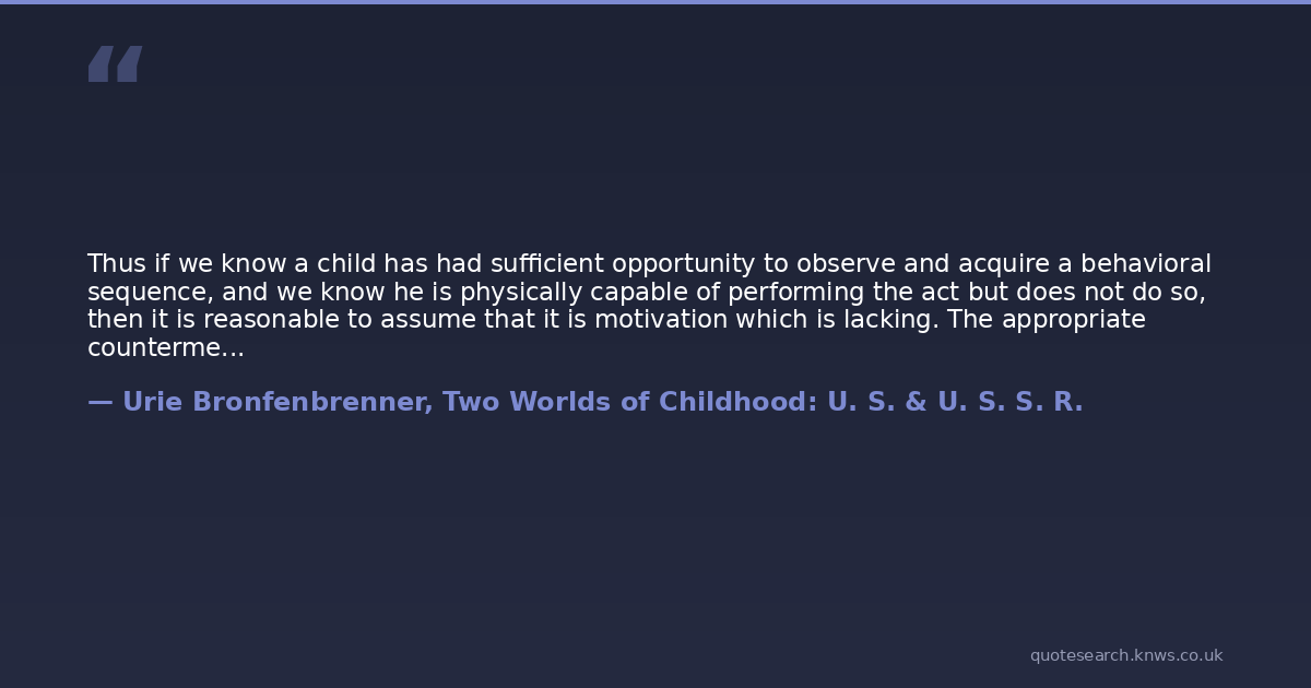 Thus if we know a child has had sufficient opportunity to observe and acquire a behavioral sequence, and we know he is physically capable of performing the act but does not do so, then it is reasonable to assume that it is motivation which is lacking. The appropriate countermeasure then involves increasing the subjective value of the desired act relative to any competing response tendencies he might have, rather than having the model senselessly repeat an already redundant sequence of behavior.