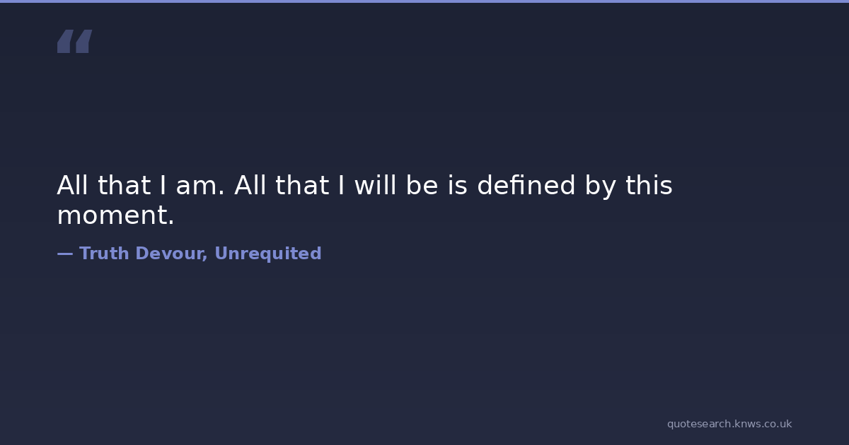 All that I am. All that I will be is defined by this moment. believe faith happiness joy karma karmic kindred-spirits love romance sated soul soul-mate truth-devour twin-flames wantin Download Image Share on X Share on Facebook Copy Link