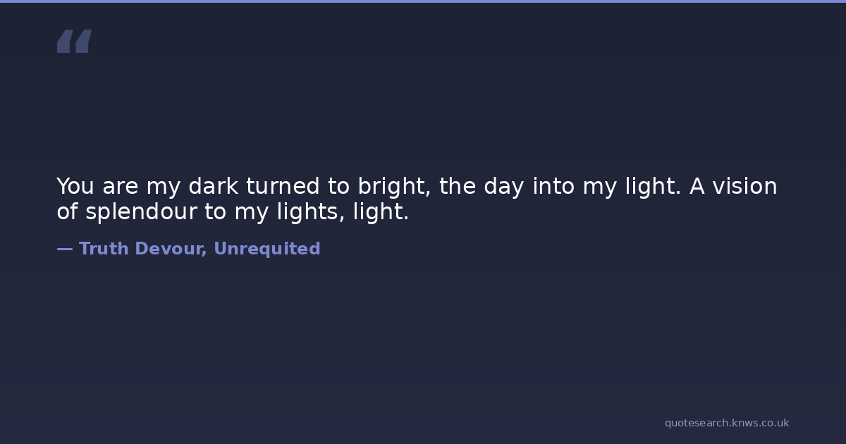 You are my dark turned to bright, the day into my light. A vision of splendour to my lights, light.