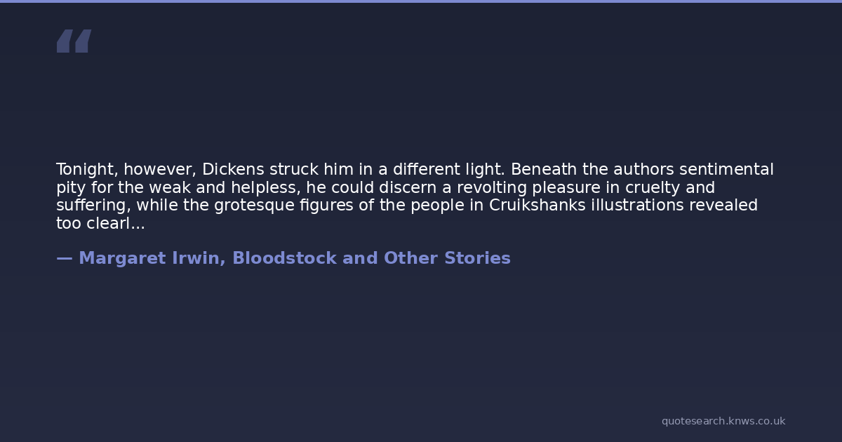 Tonight, however, Dickens struck him in a different light. Beneath the authors sentimental pity for the weak and helpless, he could discern a revolting pleasure in cruelty and suffering, while the grotesque figures of the people in Cruikshanks illustrations revealed too clearly the hideous distortions of their souls. What had seemed humorous now appeared diabolic, and in disgust at these two favourites he turned to Walter Pater for the repose and dignity of a classic spirit.But presently he wondered if this spirit were not in itself of a marble quality, frigid and lifeless, contrary to the purpose of nature. I have often thought, he said to himself, that there is something evil in the austere worship of beauty for its own sake. He had never thought so before, but he liked to think that this impulse of fancy was the result of mature consideration, and with this satisfaction he composed himself for sleep. He woke two or three times in the night, an unusual occurrence, but he was glad of it, for each time he had been dreaming horribly of these blameless Victorian worksIt turned out to be the Boys Gullivers Travels that Granny had given him, and Dicky had at last to explain his rage with the devil who wrote it to show that men were worse than beasts and the human race a washout. A boy who never had good school reports had no right to be so morbidly sensitive as to penetrate to the underlying cynicism of Swifts delightful fable, and that moreover in the bright and carefully expurgated edition they bring out nowadays. Mr Corbett could not say he had ever noticed the cynicism himself, though he knew from the critical books it must be there, and with some annoyance he advised his son to take out a nice bright modern boys adventure story that could not depress anybody. Mr Corbett soon found that he too was off reading. Every new book seemed to him weak, tasteless and insipid; while his old and familiar books were depressing or even, in some obscure way, disgusting. Authors must all be filthy-minded; they probably wrote what they dared not express in their lives. Stevenson had said that literature was a morbid secretion; he read Stevenson again to discover his peculiar morbidity, and detected in his essays a self-pity masquerading as courage, and in Treasure Island an invalids sickly attraction to brutality. This gave him a zest to find out what he disliked so much, and his taste for reading revived as he explored with relish the hidden infirmities of minds that had been valued by fools as great and noble. He saw Jane Austen and Charlotte Bront as two unpleasant examples of spinsterhood; the one as a prying, sub-acid busybody in everyone elses flirtations, the other as a raving, craving maenad seeking self-immolation on the altar of her frustrated passions. He compared Wordsworths love of nature to the monstrous egoism of an ancient bellwether, isolated from the flock.