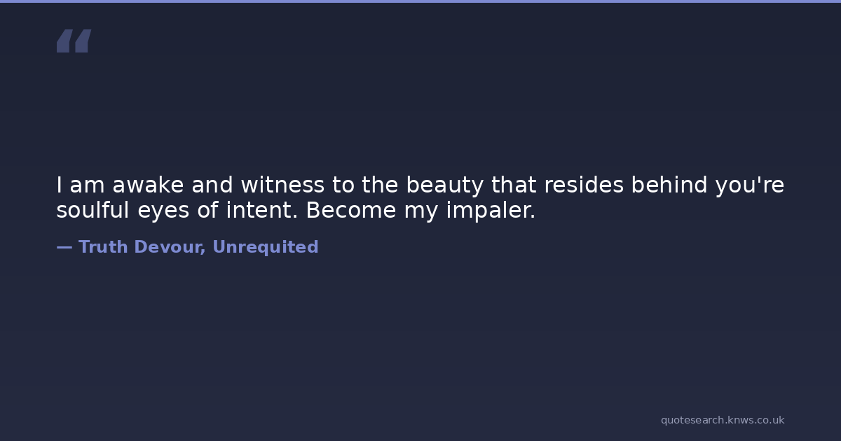 I am awake and witness to the beauty that resides behind you're soulful eyes of intent. Become my impaler.