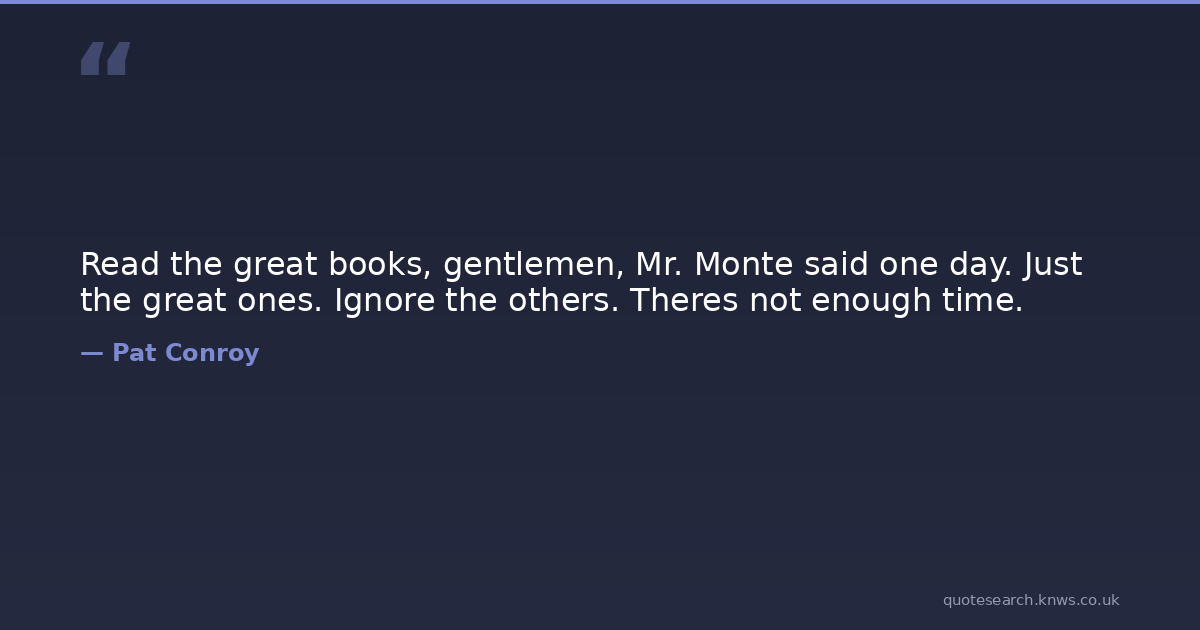 Read the great books, gentlemen, Mr. Monte said one day. Just the great ones. Ignore the others. Theres not enough time.