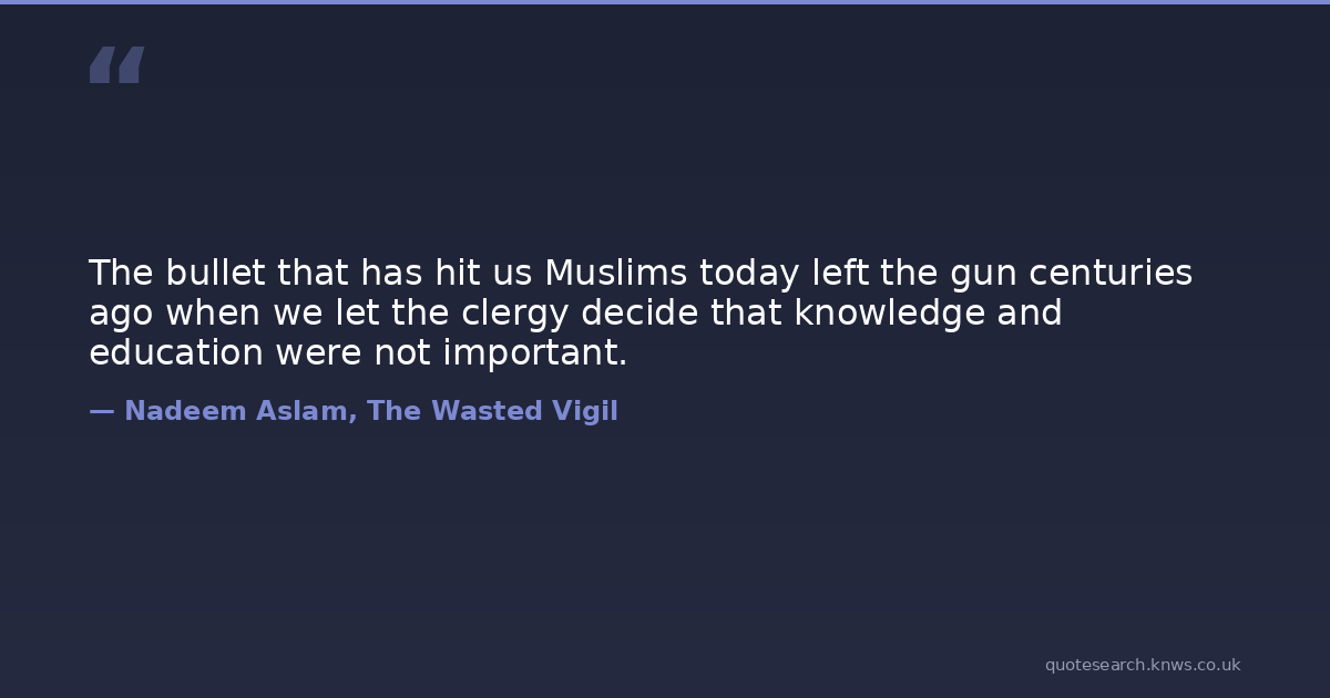 The bullet that has hit us Muslims today left the gun centuries ago when we let the clergy decide that knowledge and education were not important.