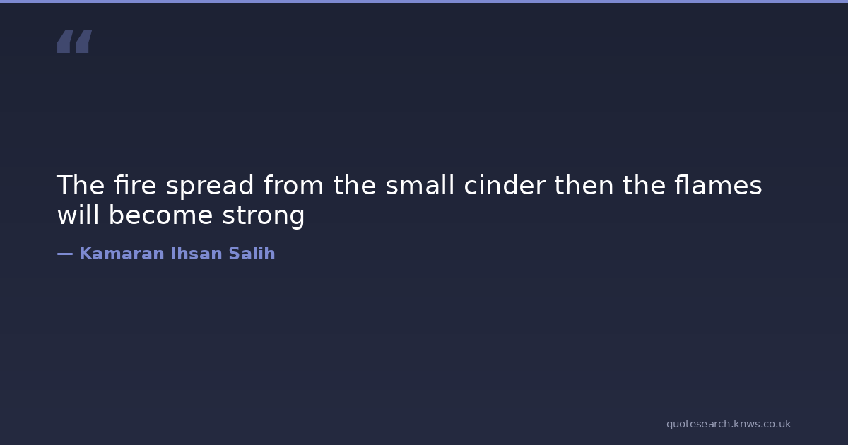 The fire spread from the small cinder then the flames will become strong phylosophical proverb proverbial-wisdom proverbs wisdom-quotes Download Image Share on X Share on Facebook Copy Link