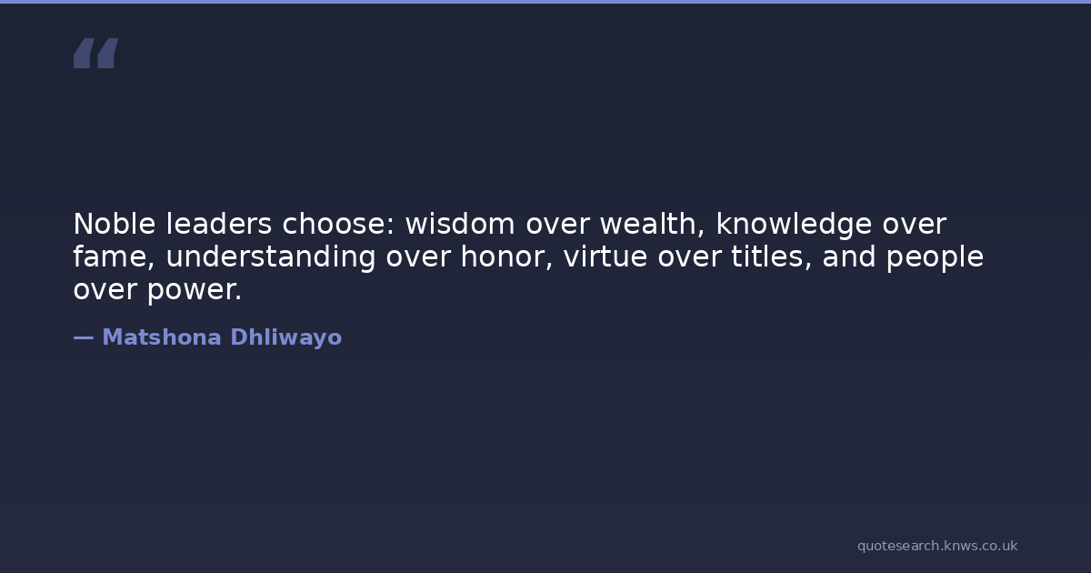 Noble leaders choose: wisdom over wealth, knowledge over fame, understanding over honor, virtue over titles, and people over power.