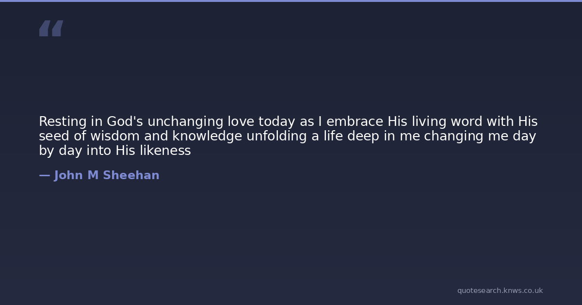 Resting in God's unchanging love today as I embrace His living word with His seed of wisdom and knowledge unfolding a life deep in me changing me day by day into His likeness