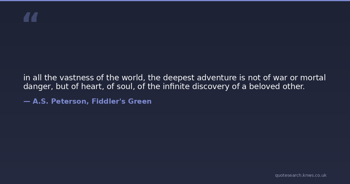 in all the vastness of the world, the deepest adventure is not of war or mortal danger, but of heart, of soul, of the infinite discovery of a beloved other.