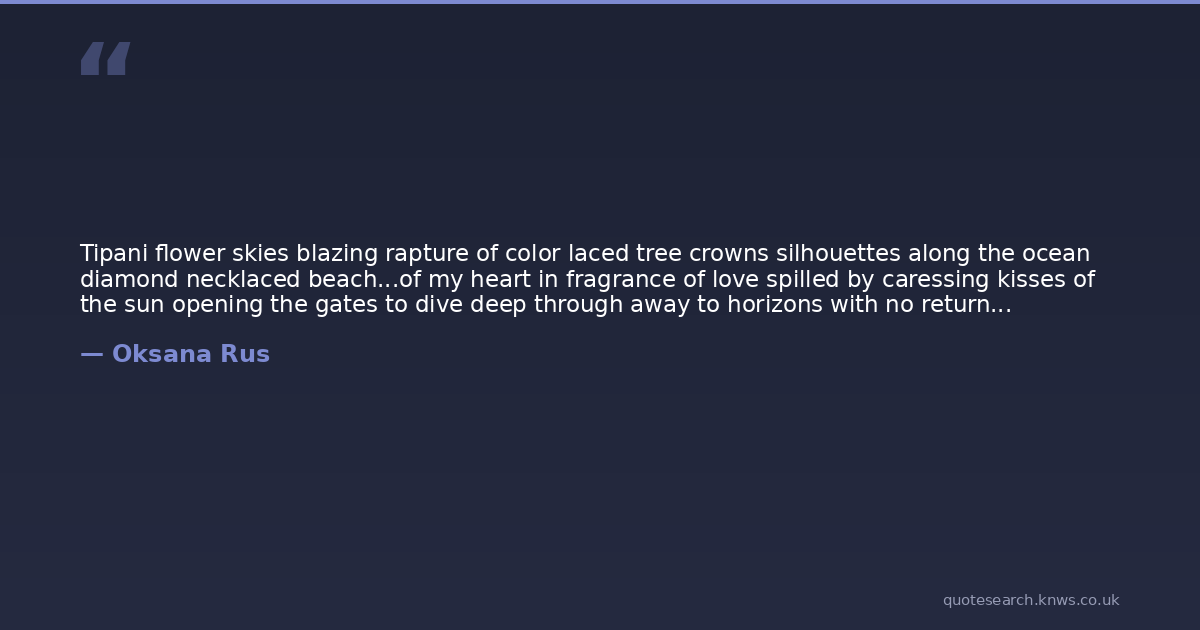 Tipani flower skies blazing rapture of color laced tree crowns silhouettes along the ocean diamond necklaced beach...of my heart in fragrance of love spilled by caressing kisses of the sun opening the gates to dive deep through away to horizons with no return...