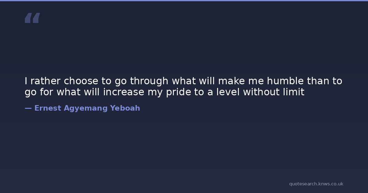 I rather choose to go through what will make me humble than to go for what will increase my pride to a level without limit