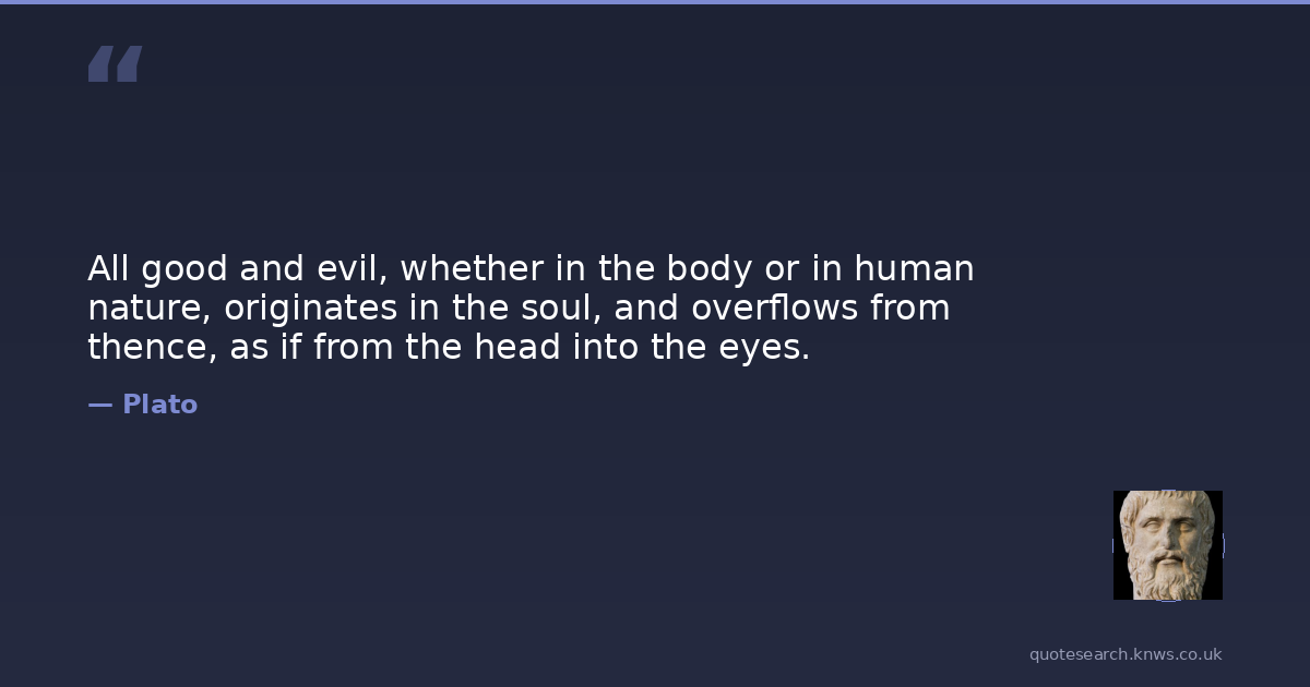 All good and evil, whether in the body or in human nature, originates in the soul, and overflows from thence, as if from the head into the eyes.