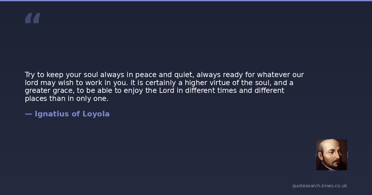 Try to keep your soul always in peace and quiet, always ready for whatever our lord may wish to work in you. it is certainly a higher virtue of the soul, and a greater grace, to be able to enjoy the Lord in different times and different places than in only one.