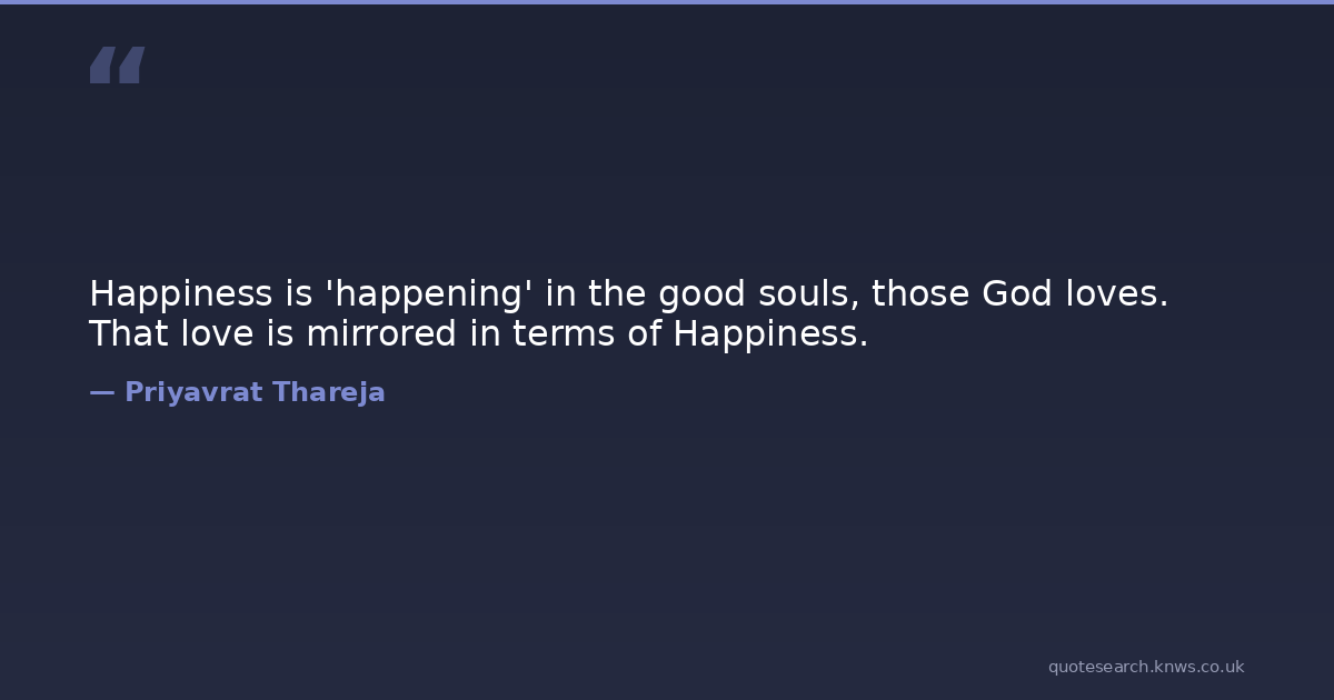 Happiness is 'happening' in the good souls, those God loves. That love is mirrored in terms of Happiness.