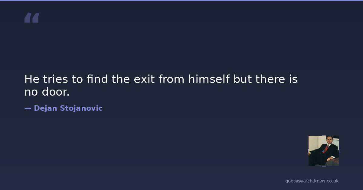 He tries to find the exit from himself but there is no door.