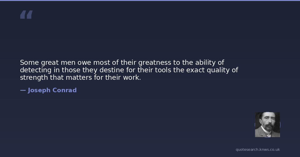 Some great men owe most of their greatness to the ability of detecting in those they destine for their tools the exact quality of strength that matters for their work.