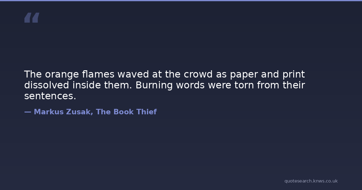 The orange flames waved at the crowd as paper and print dissolved inside them. Burning words were torn from their sentences.