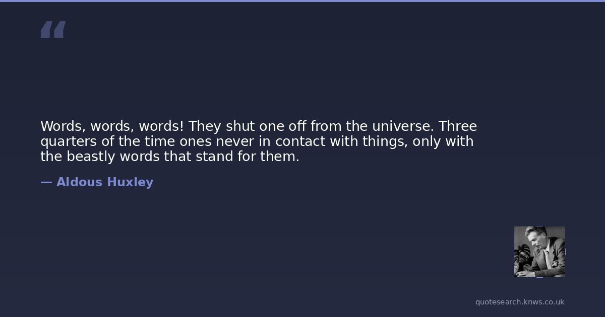 Words, words, words! They shut one off from the universe. Three quarters of the time ones never in contact with things, only with the beastly words that stand for them.