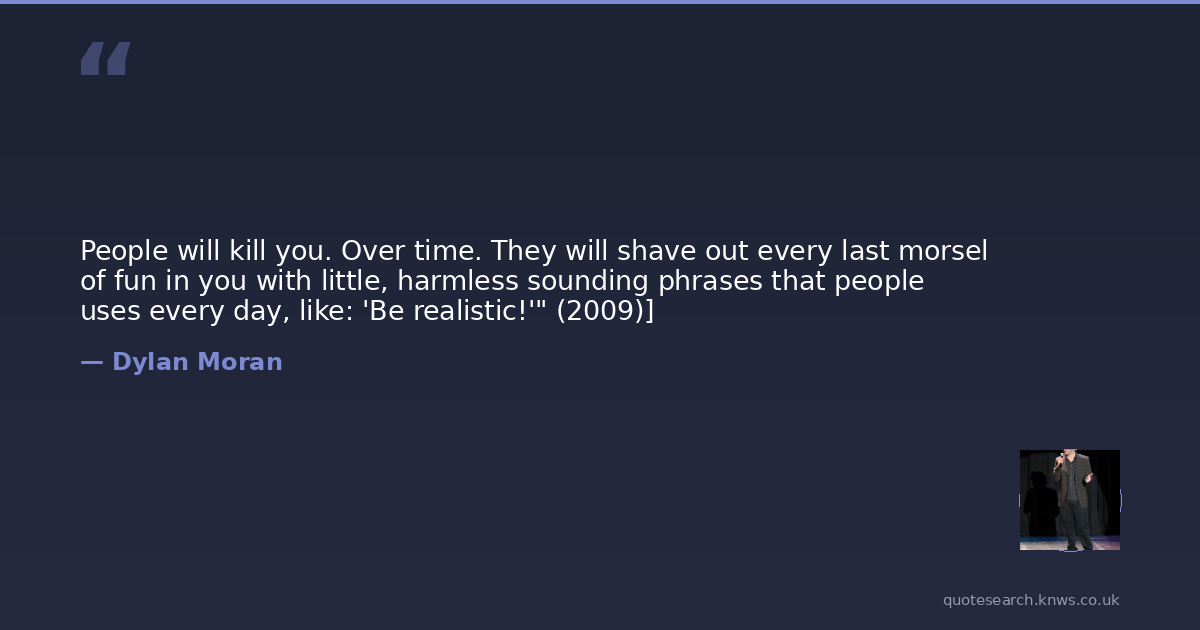 People will kill you. Over time. They will shave out every last morsel of fun in you with little, harmless sounding phrases that people uses every day, like: 'Be realistic!'" (2009)]