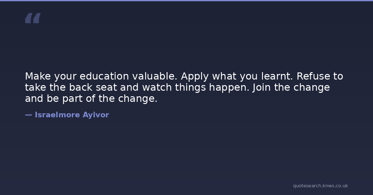 Make your education valuable. Apply what you learnt. Refuse to take the back seat and watch things happen. Join the change and be part of the change.