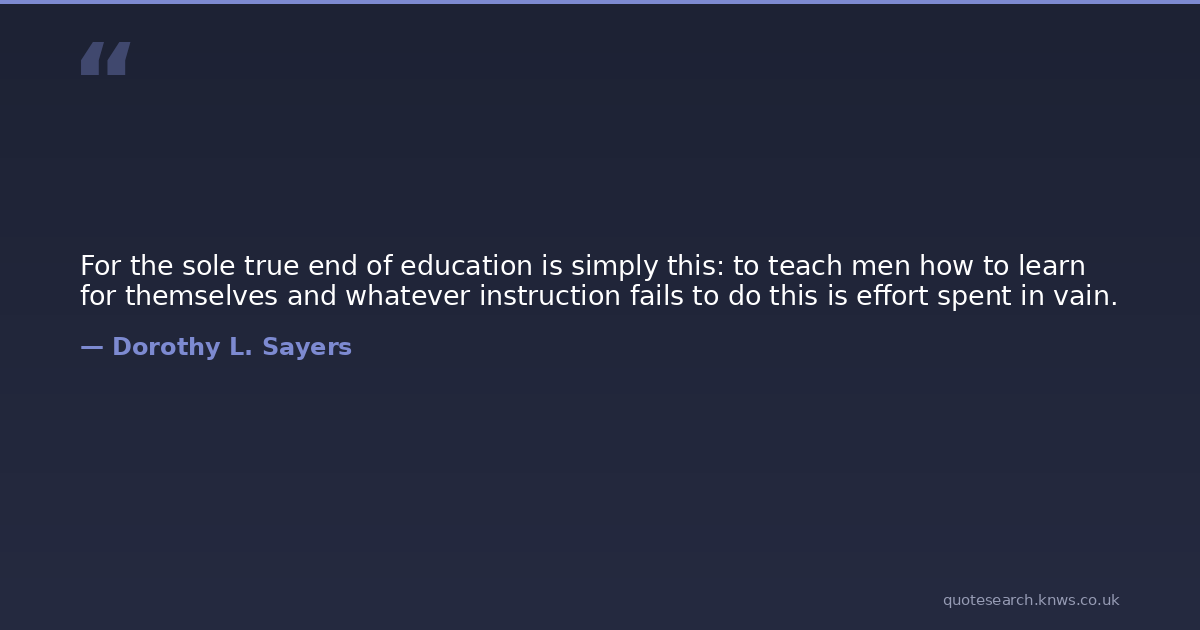 For the sole true end of education is simply this: to teach men how to learn for themselves and whatever instruction fails to do this is effort spent in vain.