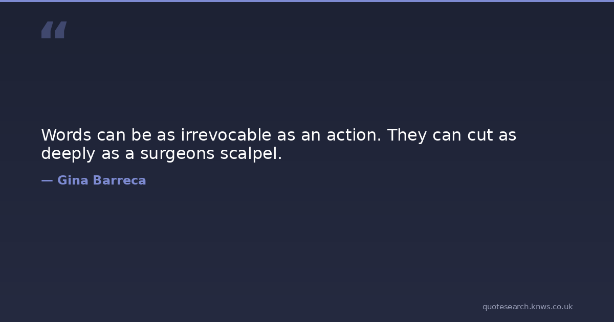 Words can be as irrevocable as an action. They can cut as deeply as a surgeons scalpel.