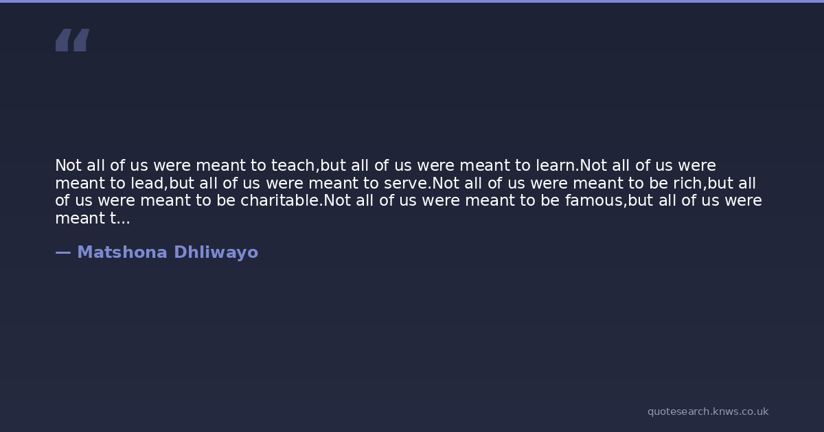 Not all of us were meant to teach,but all of us were meant to learn.Not all of us were meant to lead,but all of us were meant to serve.Not all of us were meant to be rich,but all of us were meant to be charitable.Not all of us were meant to be famous,but all of us were meant to be upright.Not all of us were meant to be mighty,but all of us were meant to persevere.Not all of us were meant to be extraordinary,but all of us were meant to prevail.