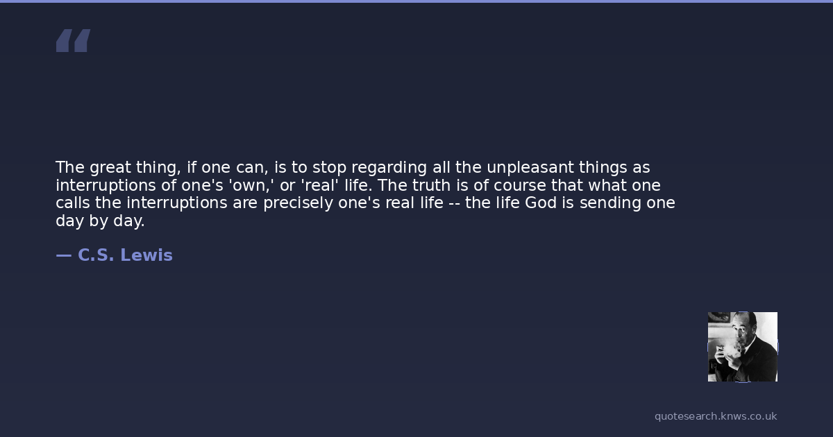 The great thing, if one can, is to stop regarding all the unpleasant things as interruptions of one's 'own,' or 'real' life. The truth is of course that what one calls the interruptions are precisely one's real life -- the life God is sending one day by day.
