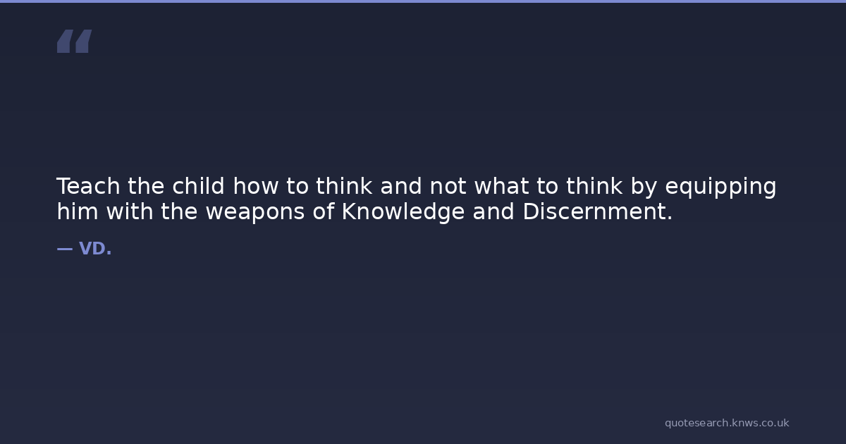 Teach the child how to think and not what to think by equipping him with the weapons of Knowledge and Discernment.