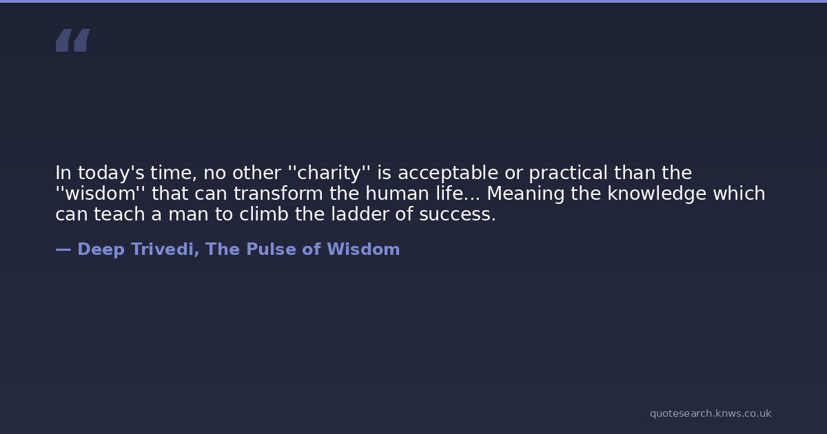 In today's time, no other ''charity'' is acceptable or practical than the ''wisdom'' that can transform the human life... Meaning the knowledge which can teach a man to climb the ladder of success.