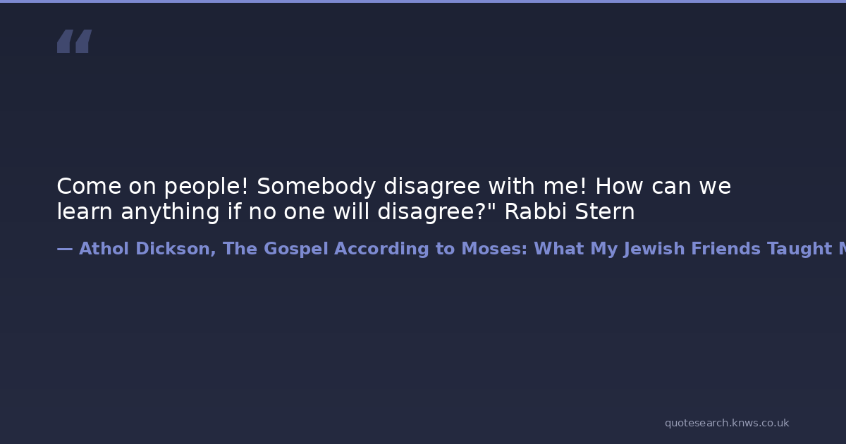 Come on people! Somebody disagree with me! How can we learn anything if no one will disagree?" Rabbi Stern debate education jewish-learning judaism rabbi wisdom Download Image Share on X Share on Facebook Copy Link