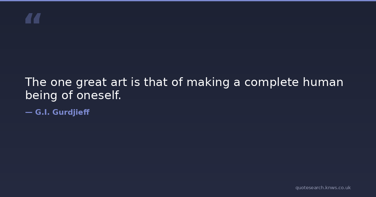 G.I. Gurdjieff was a 20th-century Russian empire mystic and writer (c. 1866–1877 – 1949). George Ivanovich Gurdjieff was a philosopher, mystic, spiritual teacher, composer, and movements teacher. Born in the Russian Empire, he briefly became a citizen of the First Republic of Armenia after its formation in 1918, but fled the impending Red Army invasion of Armenia in 1920, which rendered him stateless. Read more on Wikipedia →