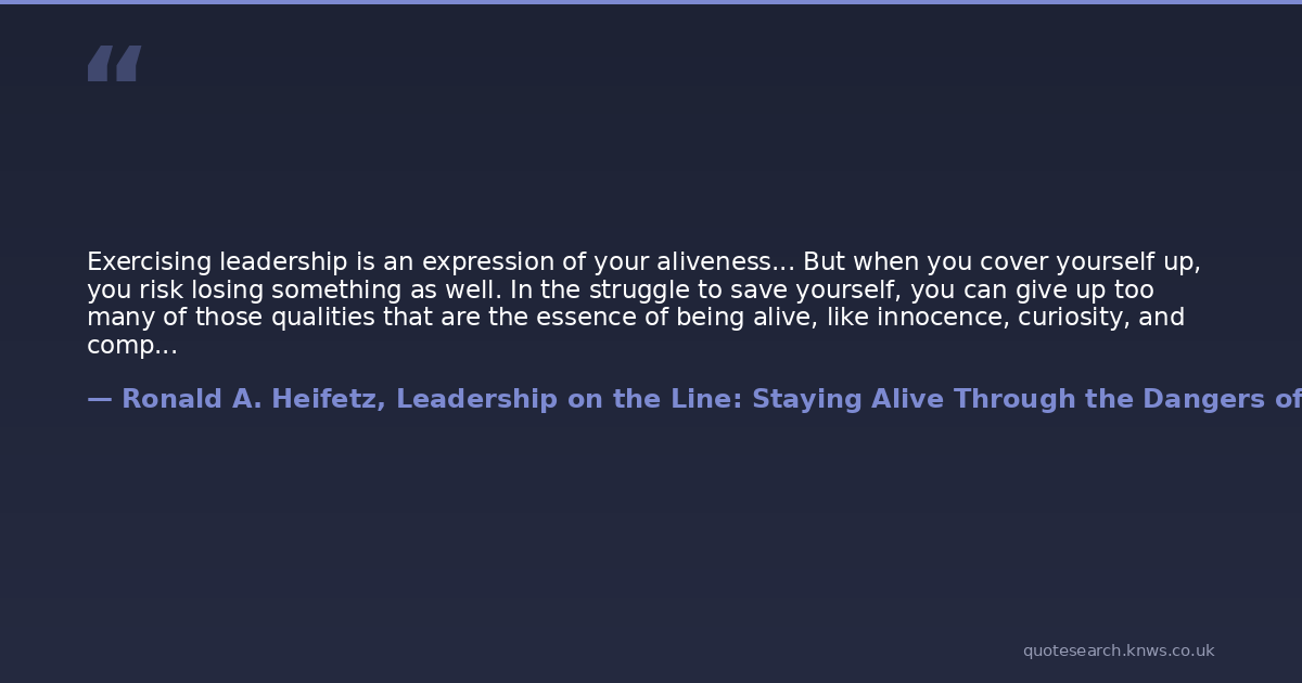 Exercising leadership is an expression of your aliveness... But when you cover yourself up, you risk losing something as well. In the struggle to save yourself, you can give up too many of those qualities that are the essence of being alive, like innocence, curiosity, and compassion.