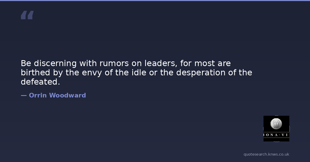 Be discerning with rumors on leaders, for most are birthed by the envy of the idle or the desperation of the defeated.