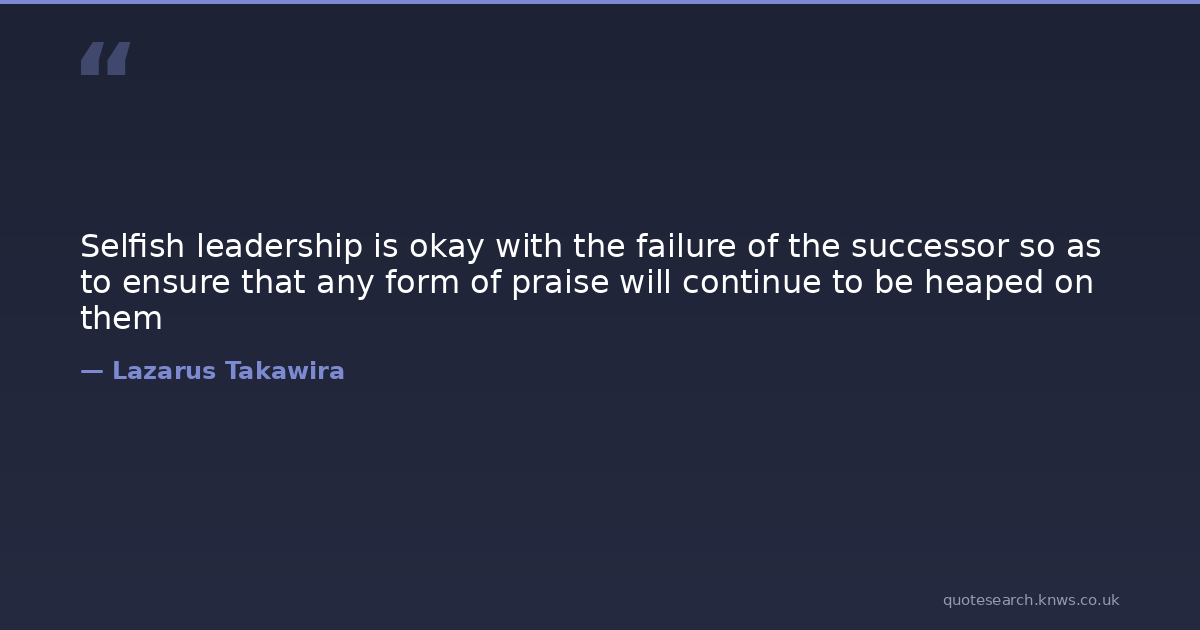 Selfish leadership is okay with the failure of the successor so as to ensure that any form of praise will continue to be heaped on them