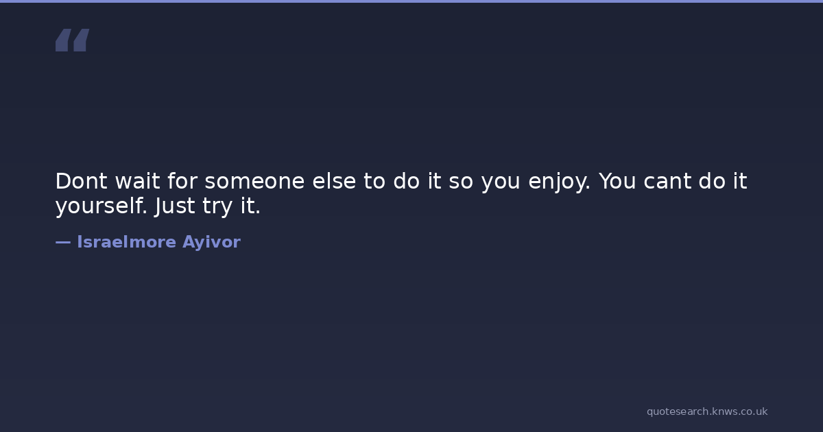 Dont wait for someone else to do it so you enjoy. You cant do it yourself. Just try it.