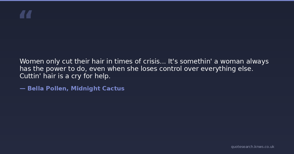 Women only cut their hair in times of crisis... It's somethin' a woman always has the power to do, even when she loses control over everything else. Cuttin' hair is a cry for help.