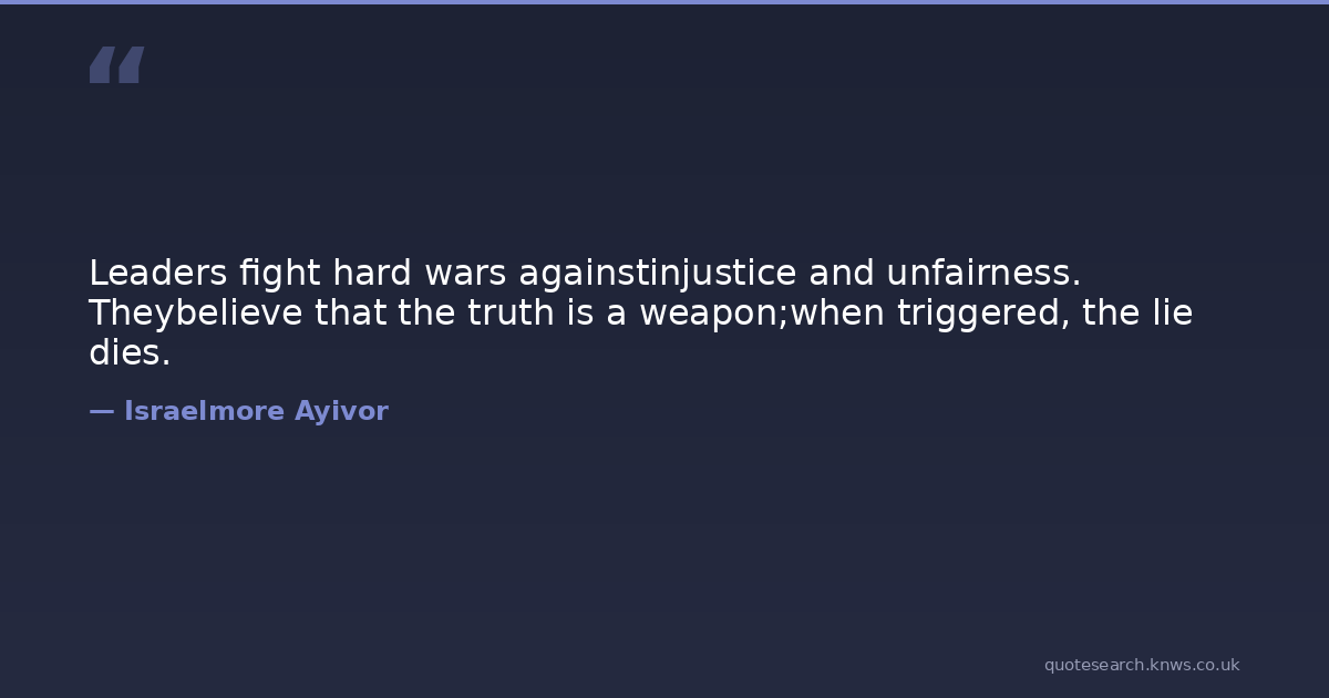 Leaders fight hard wars againstinjustice and unfairness. Theybelieve that the truth is a weapon;when triggered, the lie dies.