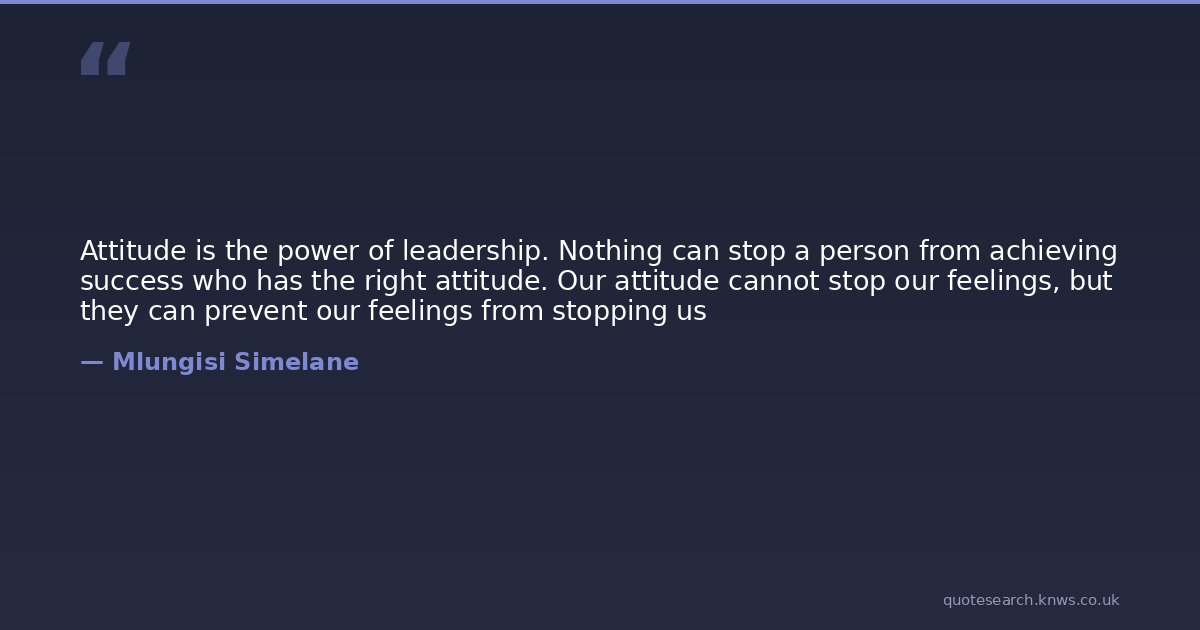 Attitude is the power of leadership. Nothing can stop a person from achieving success who has the right attitude. Our attitude cannot stop our feelings, but they can prevent our feelings from stopping us
