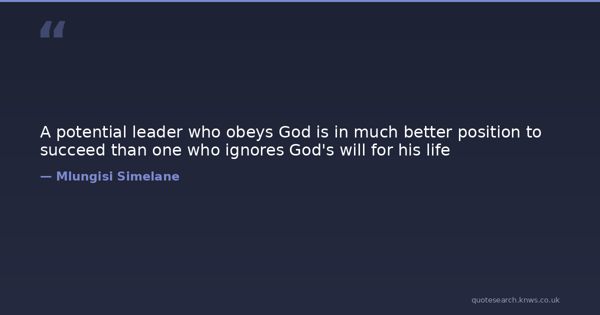 A potential leader who obeys God is in much better position to succeed than one who ignores God's will for his life