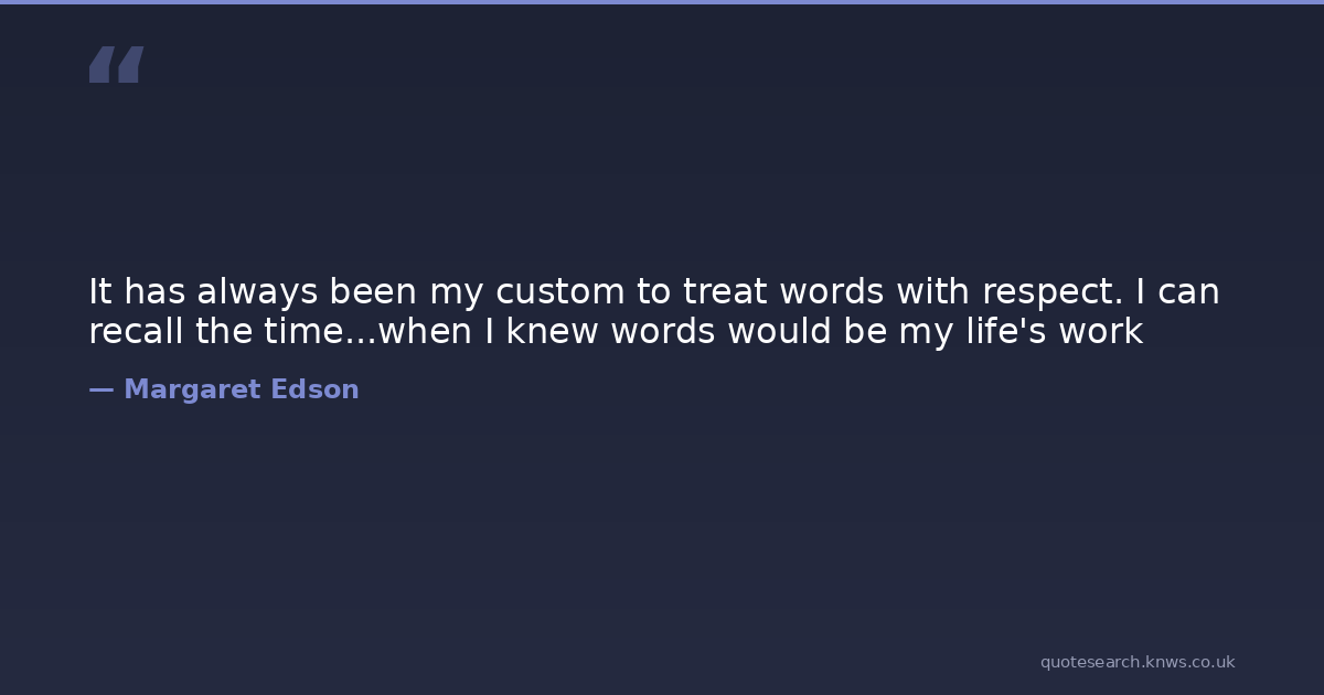 It has always been my custom to treat words with respect. I can recall the time...when I knew words would be my life's work words Download Image Share on X Share on Facebook Copy Link