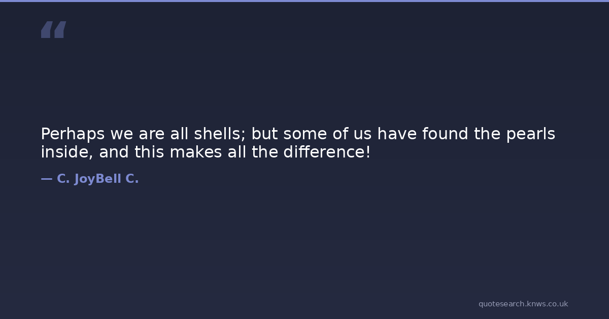 Perhaps we are all shells; but some of us have found the pearls inside, and this makes all the difference!