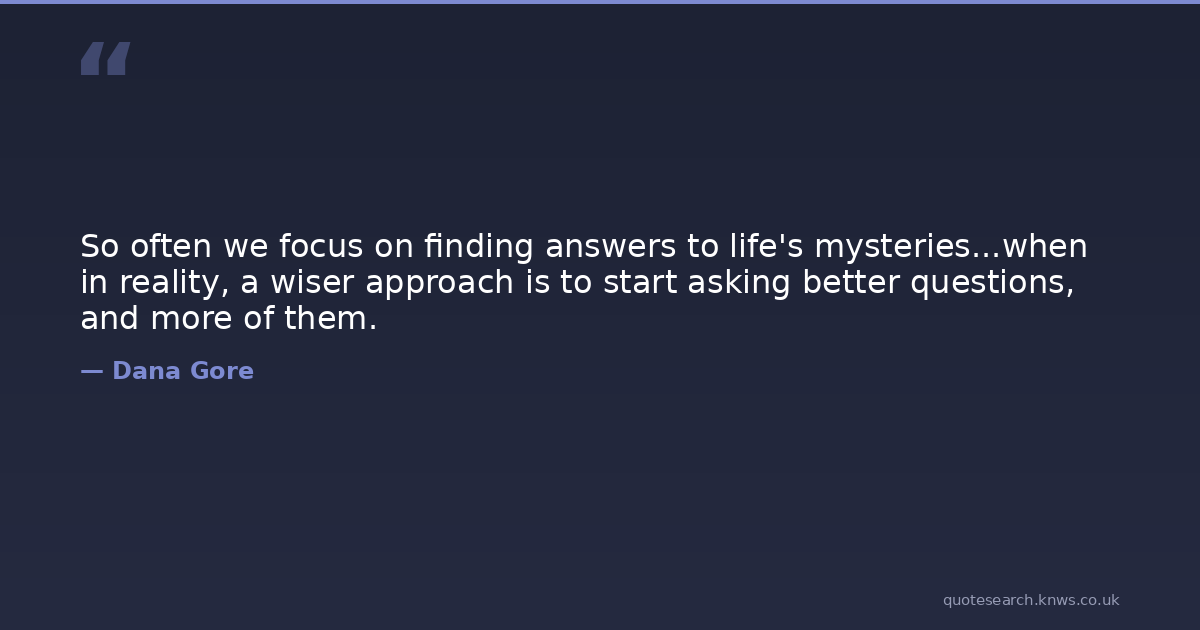 So often we focus on finding answers to life's mysteries...when in reality, a wiser approach is to start asking better questions, and more of them.